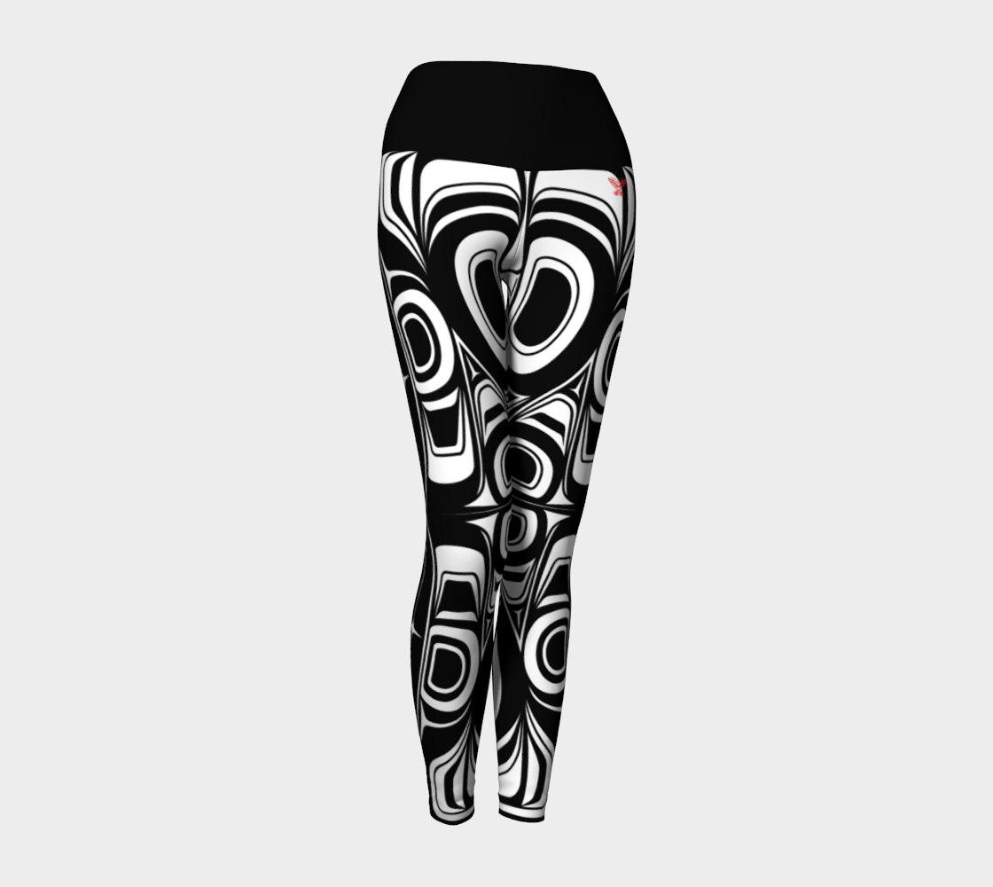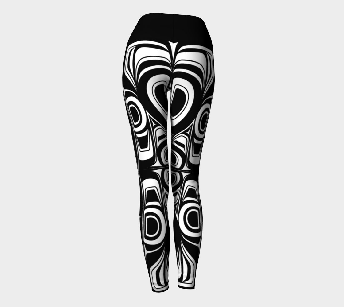 Work out in comfort with our 3 panel yoga leggings featuring our signature performance fabrics that stretch with you and won't give up! The high-cut foldover waistband gives you versatility, freedom of movement, and comfort making these leggings perfect for everyday wear. Art by Shar Wilson, Gitxsan Artist.
