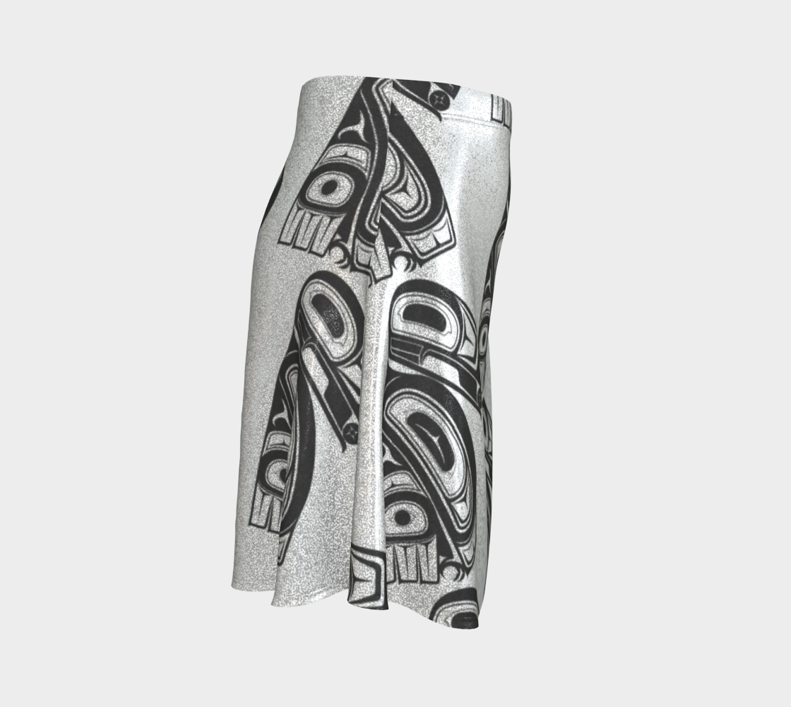 Featuring art by Shar Wilson, Gitxsan Artist these flare skirts are great paired with your fave tee for a casual day, or if you’re getting ready for a festival or concert, pair with a printed crop top!